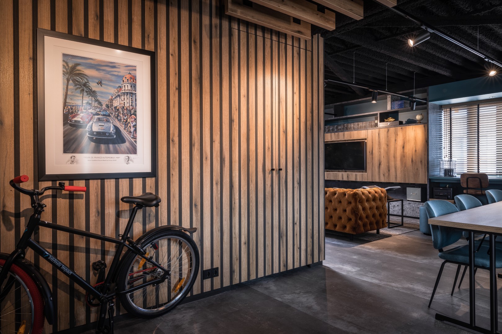 Ein gemütliches, modernes, industrielles Büro einrichtung: