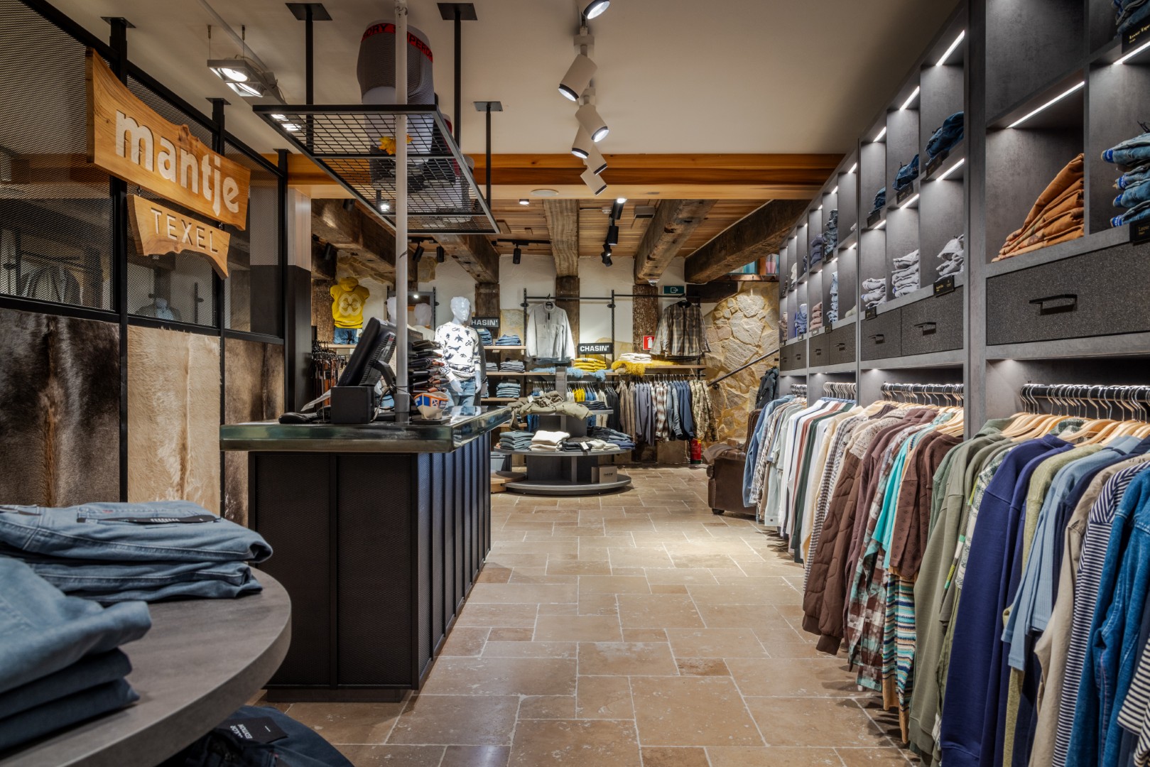 Den Innenarchitekten und Möbelherstellern von WSB ist es gelungen, einen zweiten Laden für das Bekleidungsgeschäft Mantje auf dem schönen Texel zu entwerfen und zu realisieren. Eine lustige Herausforderung, wieder ein einzigartiges Innenkonzept zu schaffen. Neben der Ausstattung von Mantje Den Burg mit einem 268 m² großen Einkaufserlebnis realisierte WSB auch den anderen Standort von Mantje de Koog auf Texel.