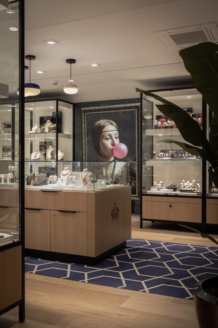 En plus des bijoux de luxe, Coster propose une vaste collection de bijoux et montres accessibles. Cette collection est exposée au rez-de-chaussée, dans un espace lumineux, frais et jeune qui reflète parfaitement le caractère moderne des produits. Le design structure l’espace pour séparer élégamment les différentes marques. En regroupant les vitrines, chaque marque est présentée de manière claire, préservant l’harmonie de l’espace.